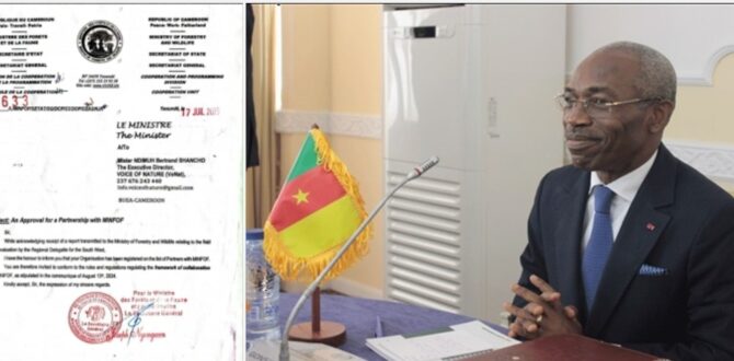 Voice of Nature (VoNat) is excited to announce the approval of a strategic partnership with Cameroon’s Ministry of Forestry and Wildlife (MINFOF). This milestone reflects our shared mission to conserve Cameroon’s rich biodiversity, restore degraded ecosystems, and promote sustainable forest management. Through this partnership, VoNat and MINFOF will work hand in hand to strengthen community engagement in conservation, conserve endangered species, and foster environmental education and awareness across the country.